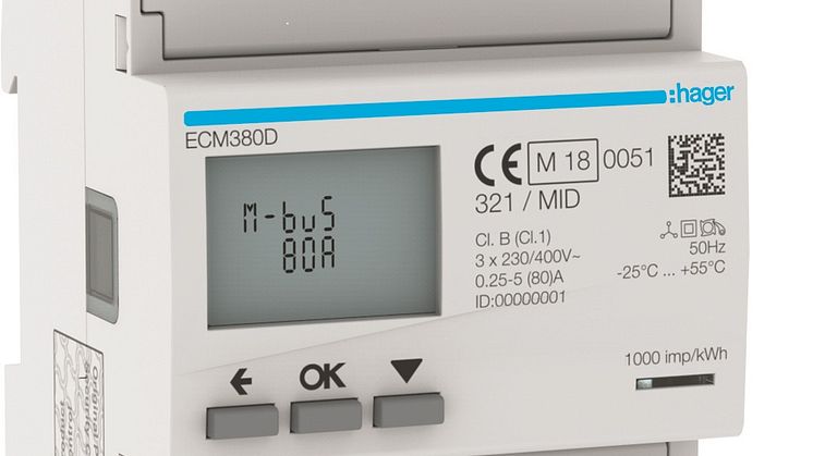 Hager lanserar ny energimätare för direkt mätning upp till 125 A. Energimätarna uppfyller alla krav för intelligent energiövervakning i bostäder och kommersiella fastigheter. De MID-godkända mätarna kan användas för faktureringsändamål, samt för företag eller större fastigheter vid installation av energihanteringssystem enligt ISO 50001. Dessutom har energimätarna funktioner som bara går att få från Hager.